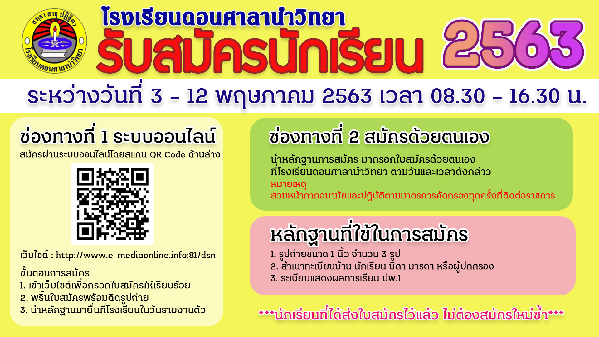 ประกาศรับสมัครนักเรียนชั้นมัธยมศึกษาปีที่ 1 และชั้นมัธยมศึกษาปีที่ 4 ปีการศึกษา 2563