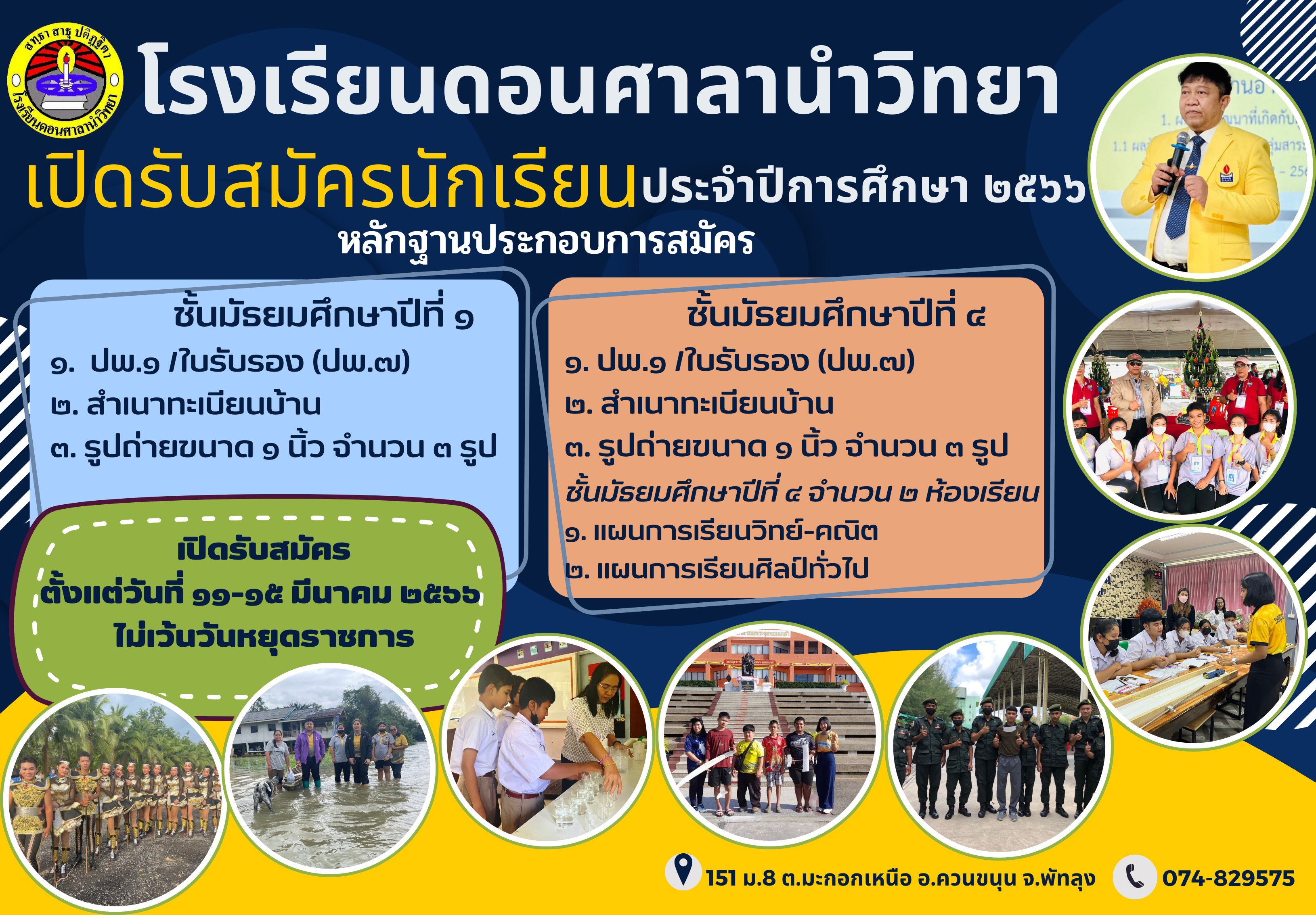 โรงเรียนดอนศาลานำวิทยา เปิดรับสมัครนักเรียนประจำปีการศึกษา 2566