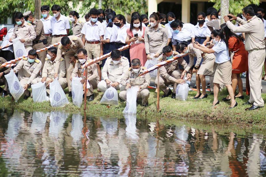 วันพฤหัสบดีที่ 22 ธันวาคม 2565 โรงเรียนดอนศาลานำวิทยา คณะผู้บริหาร ครูและบุคลากรทางการศึกษา พร้อมนักเรียน เข้าร่วมกับ นายภูดิศ ชนะสุวรรโณ นายอำเภอควนขนุน หัวหน้าส่วนราชการ กำนัน ผู้ใหญ่บ้าน ข้าราชการทุกหมู่เหล่า ผู้นำองค์กรปกครองส่วนท้องถิ่น พ่อค้า ประชาชน จัดพิธีเจริญพระพุทธมนต์เพื่อถวายพระพรแด่สมเด็จพระเจ้าลูกเธอ เจ้าฟ้าพชรกิตติยาภา นเรนทิราเทพยวดี กรมหลวงราชสาริณีสิริพชร มหาวัชรราชธิดา ณ วัดดอนศาลา และพิธีปล่อยปลา ณ บ่อปลาศาลาสิริวัฒนการ โรงเรียนดอนศาลานำวิทยา และร่วมโครงการ รัฐ ประชารัฐ สร้างสุข S:0